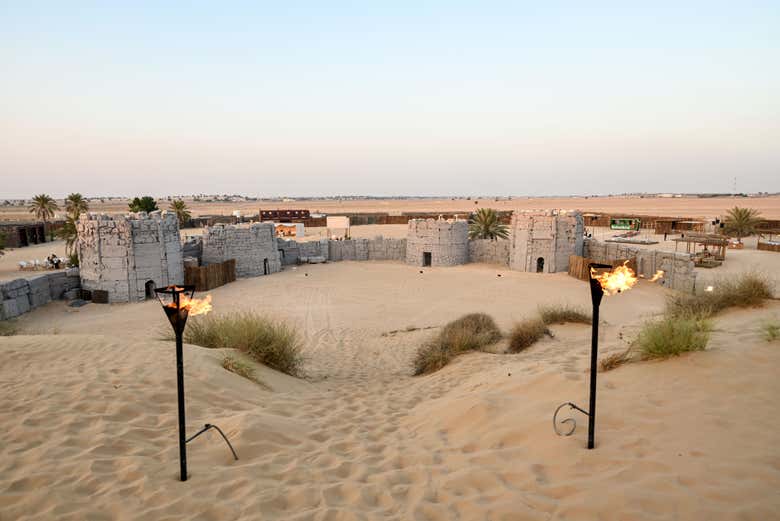 Tendréis además la oportunidad de probar la shisha, dar un paseo en quad o en buggy o simplemente relajaros en la terraza del campamento. Cuando el hambre apriete, nos dispondremos a disfrutar de una cena tipo barbacoa con productos de temporada acompañada por dos refrescos. Todo ello, con Fort Lisaili de fondo, una recreación contemporánea inspirada en la arquitectura tradicional emiratí.